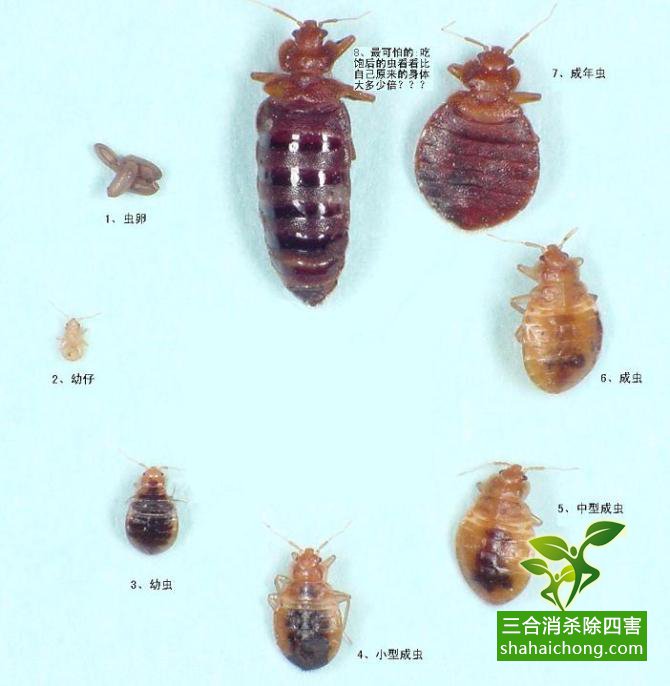 ?臭蟲的生命史分卵、若蟲、成蟲三期,成蟲變配后必先吸血才能產卵,一個雌蟲一生產(Produce)卵200~300枚,其數量亦是視乎食物供應而定,但也受溫度(temperature)影響(influence)。滅臭蟲最適溫度為32~33℃,到36℃時亦能產卵和孵化,但抗寒性差,只分布在南方諸省往北至湖南衡陽、貴州遵義、四川成都一線的熱帶和亞熱帶地區。臭蟲怎么殺墻壁、地板等縫隙都要用油灰或石膏油灰嵌縫。家具如床、桌、椅縫隙,也要用油灰嵌縫,使臭蟲無處滋生。有臭蟲的房屋,特別是木房,須進行整修。滅臭蟲最適溫度是28~29℃,至36℃時即不能繁殖;但對寒冷有較強的抵抗力,能蟄伏度過嚴冬。故其分布在我國從東北、西北往南直至福建廈門、廣西桂林和云南蒙自一線的廣大溫帶地區。卵長橢圓形(由圓形變成的長圓形),長1毫米、淡黃色,一端有蓋,產出的卵由其分泌(secretion)的快干粘合劑(Bonding agent),粘于棲息場所的縫隙內或粗糙的表面上。卵經7~10天孵出若蟲,若蟲形似成蟲,僅蟲體較小色較淺,經五次蛻皮發育為成蟲,成蟲壽命(lifetime)一年,能繁殖(fán zhí)3~4代,故它壽命長、繁殖快,具有很強的繁殖勢能。在冬天,臭蟲通常停止吸血和產卵。若蟲得不到血食,可活30天以上,成蟲得不到血食,通常可活六七個月。