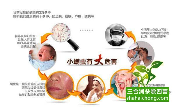 有人估算過,一克臥室塵土中約有1000只螨蟲,而研究(research)顯示,每克塵土中的螨蟲達到100——500只,就足以引起過敏人群出現癥狀。臨床上,非常多過敏病患只要疊被子、抖床單、鋪床,就會馬上出現打噴嚏、流鼻涕等過敏癥狀。